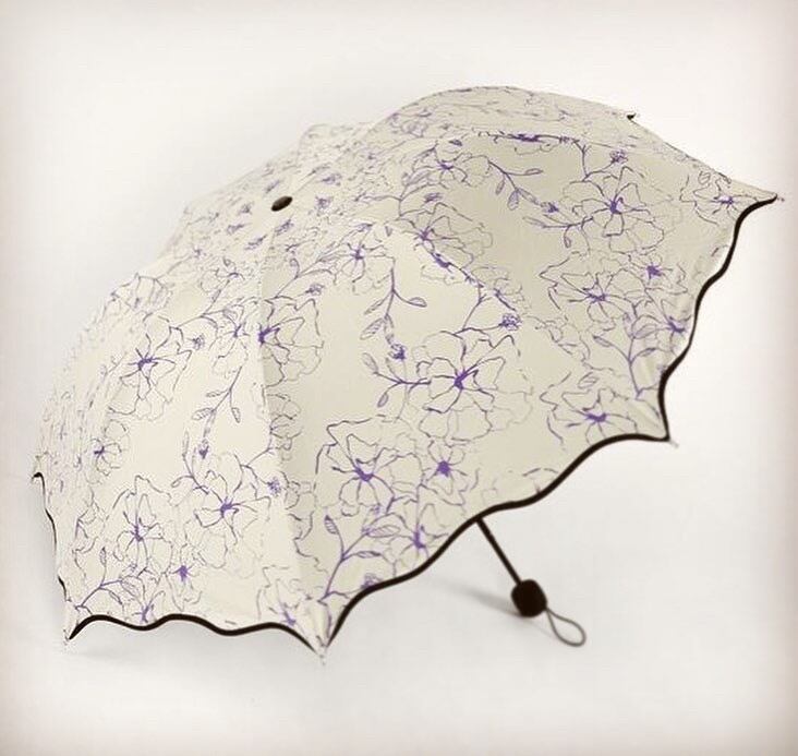 特殊コーティング生地で遮光99.9%で日差しをブロック‼︎ 晴雨兼用の折りたたみ傘、入荷です。スタイリングを邪魔しない、控えめだけど柔らかな雰囲気の花柄と、曲線が美しいカタチ。暑い日差しを優雅にブロックしてくれる、強い味方です。