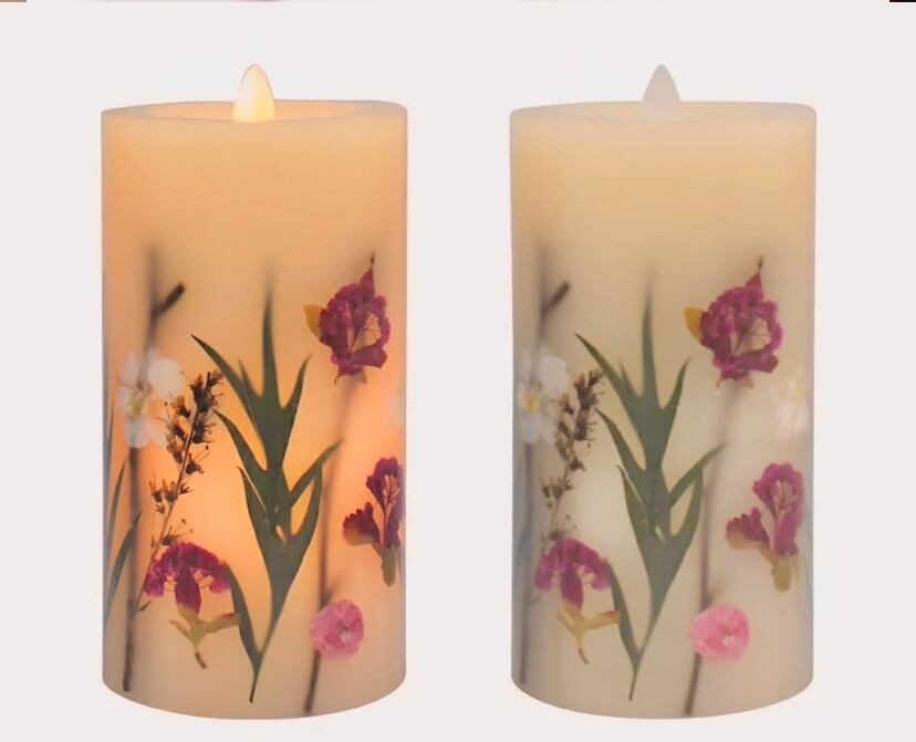 キャンドルランプ LED 押し花 揺れる炎 パープルフラワー